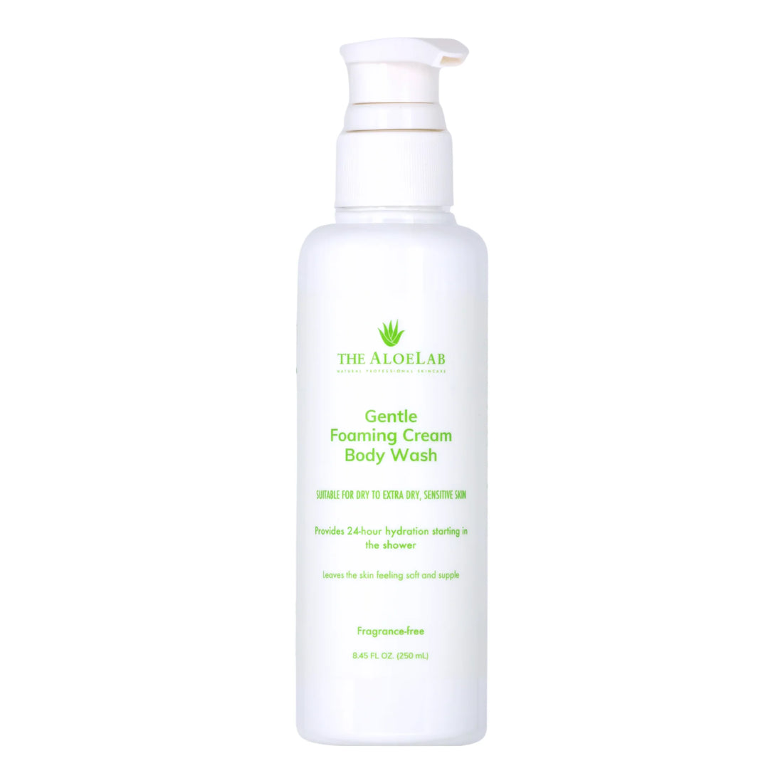 The AloeLab Gentle Foaming Cream Body Wash is fragrance-free, suits very sensitive skin, and has...