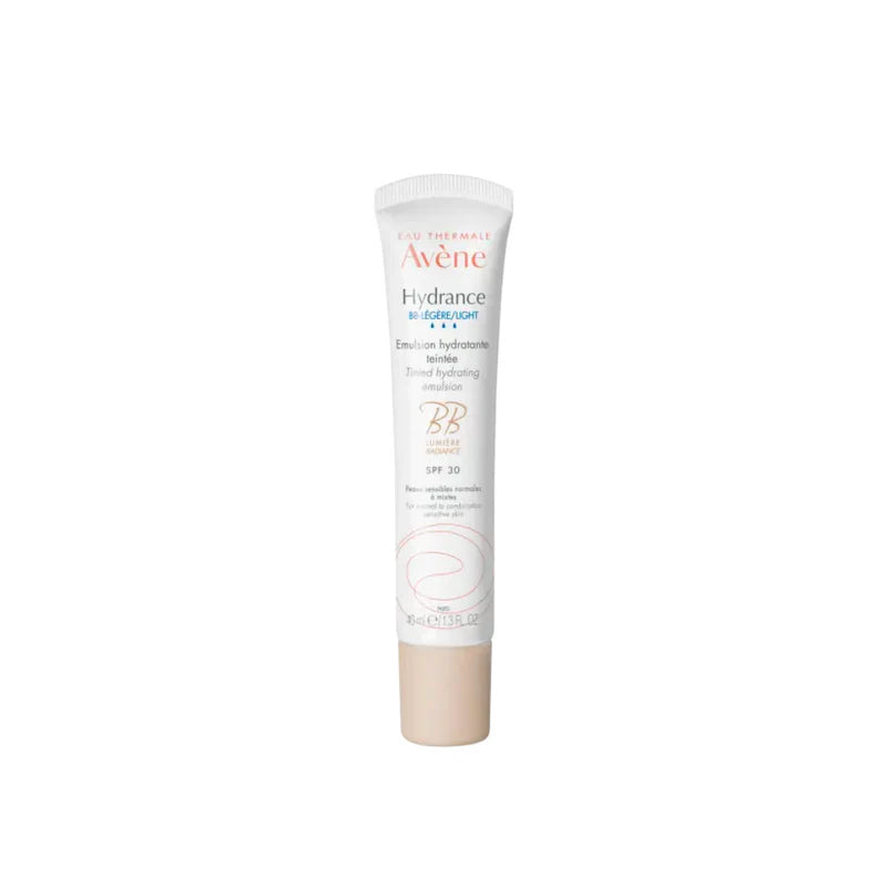 - Spread a hazelnut-sized amount of Hydrance BB-LIGHT onto your fingertips, dab it all over the face and neck and finish by smoothing from the centre to the contours of the face and neck.