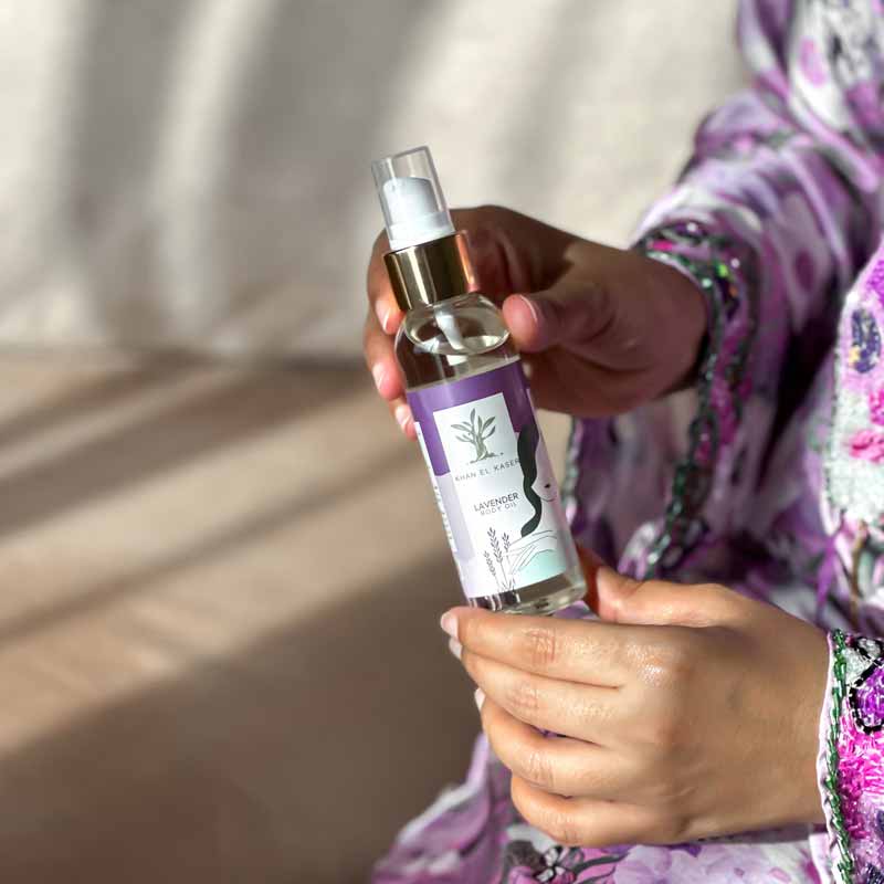 Lavender Essential Oil, Almond Oil, Olive Oil, Sesame Oil, Vitamin E, Capric Triglyceride.