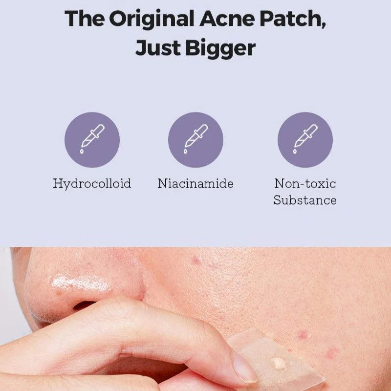 Master Patch X-Large is the perfect solution for large problematic areas on your skin. With its hydrocolloid material and added niacinamide, it cares for multiple acne spots at once while reducing their appearance. Its contoured shape effortlessly fits your facial features for a discreet and effective treatment.