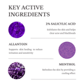 - 2% Salicylic Acid: Exfoliates the skin to clear acne and blackheads while preventing new breakouts.