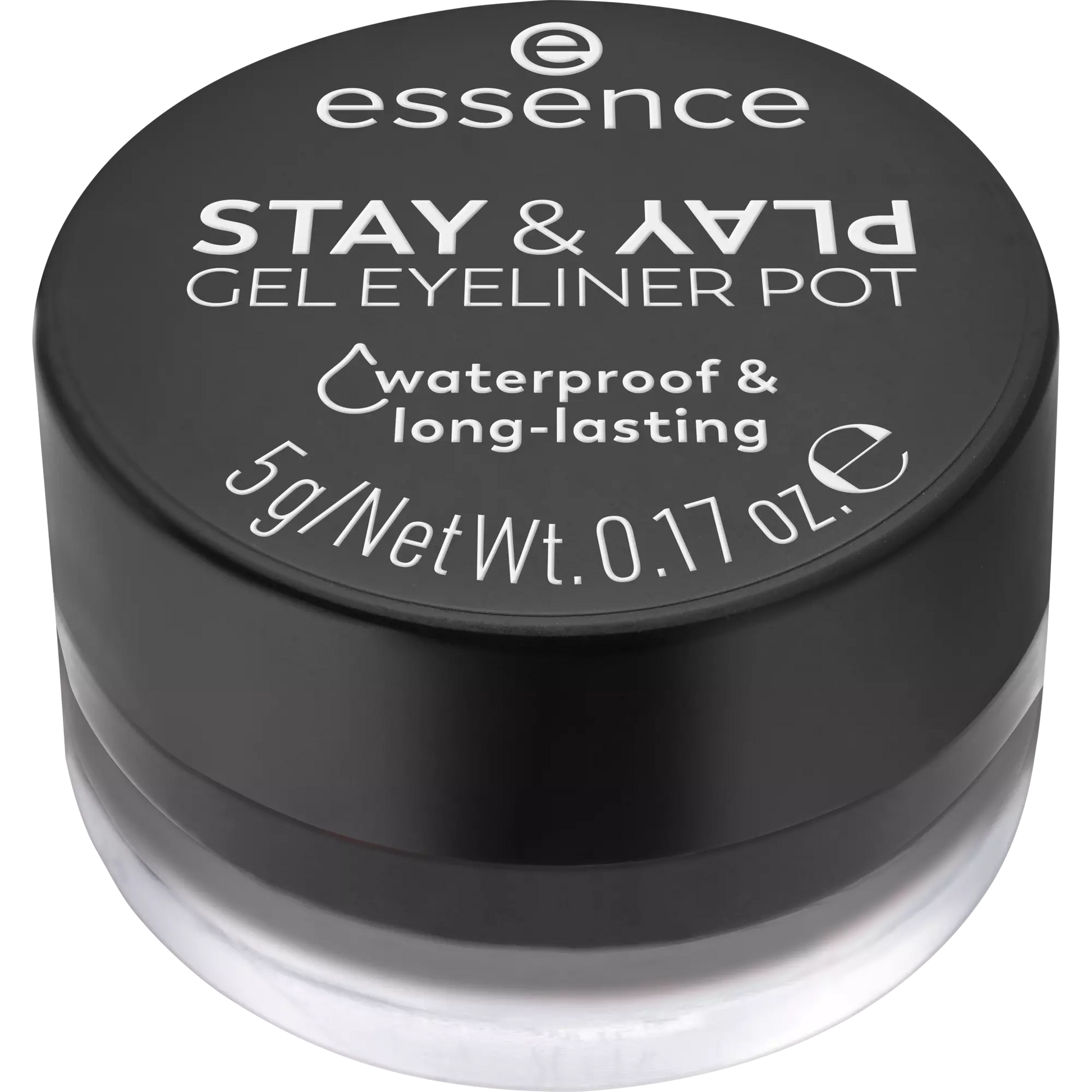 Discover limitless eye-defining possibilities with the essence STAY & PLAY GEL EYELINER POT 01 Black. This waterproof gel formula has a super creamy texture that transforms into a powdery finish as it dries. The intense black pigment allows you to create unique looks, from subtle definition to dramatic cat-eyes. The versatile gel eyeliner is the perfect addition to your make-up routine, offering two uses: a precise eyeliner and smooth eyeshadow. Its long-lasting formula ensures your look remains flawless all day without smudging or fading.