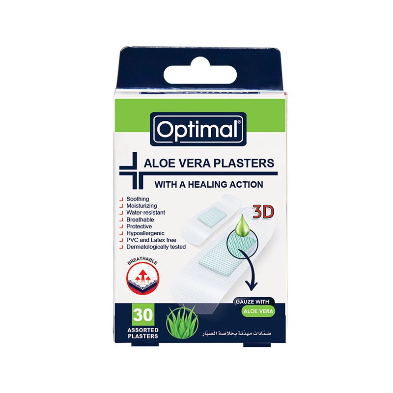 30 Assorted Pieces. Gentle healing with optimal aloe vera plasters, to soothe and protect your skin. Enriched with natural aloe vera, these breathable plasters provide a moisturizing, cooling effect while promoting faster recovery. Hypoallergenic, latex-free, and dermatologically tested, they are perfect for everyday cuts, scrapes, and minor wounds