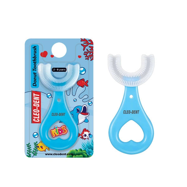 Make brushing fun for your little one with the donut toothbrush, designed for children aged 2-6. This playful, donut-shaped toothbrush features 360-degree cleaning ensuring all-around care. Made of food-grade silicone.